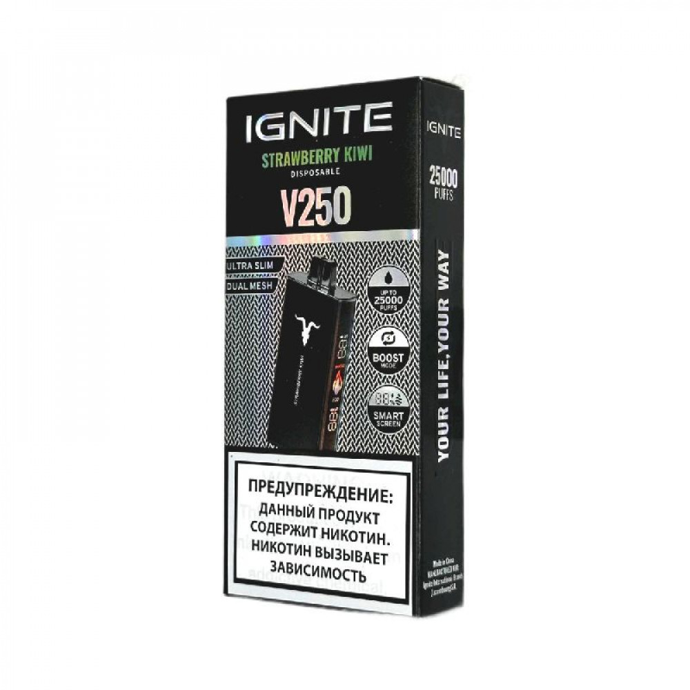 Электронная сигарета Ignite V250 Black 25000 - Strawberry Kiwi (Клубника киви) - купить в Саратове