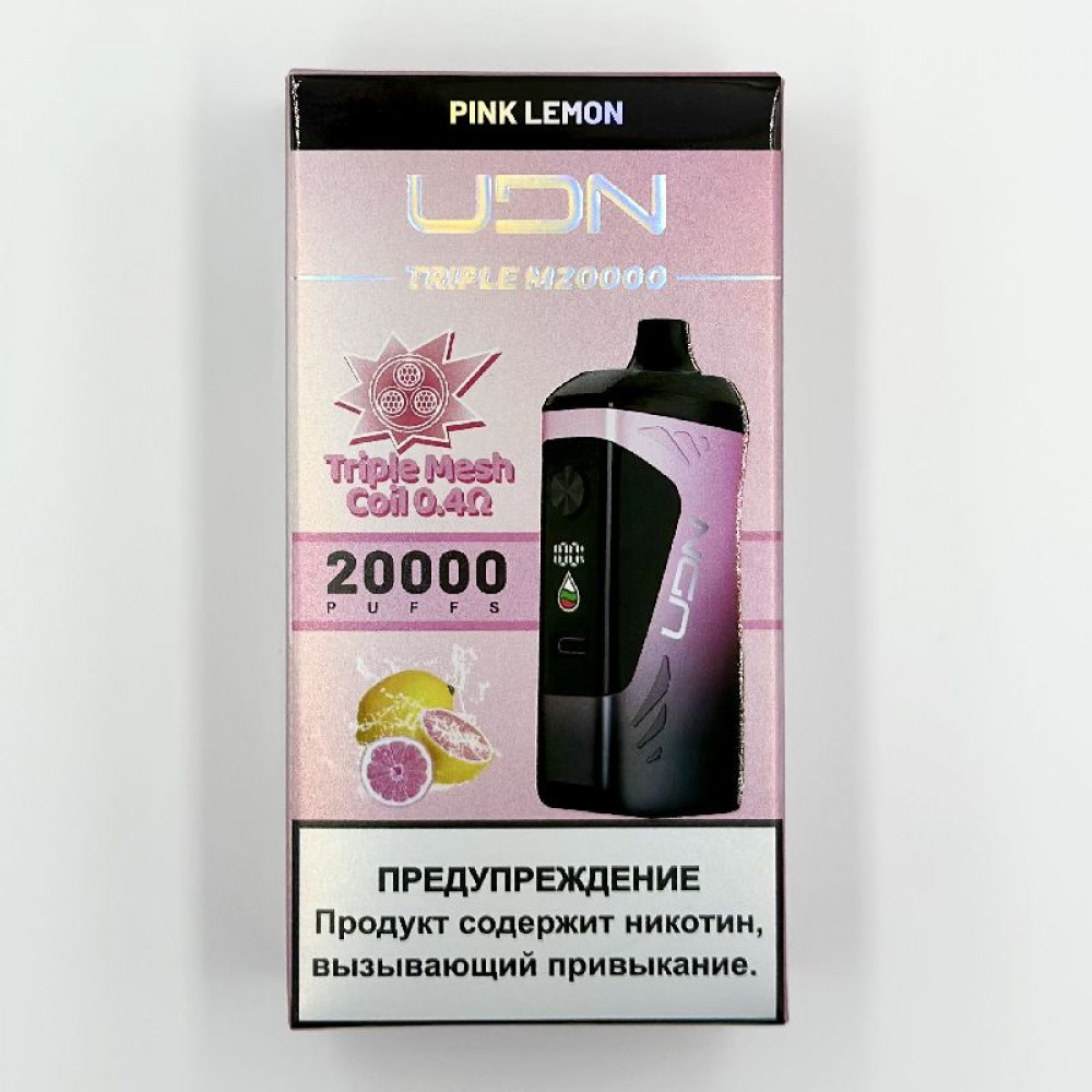 Электронная сигарета UDN TRIPLE M 20000 затяжек - Pink Lemon (Розовый Лимон) — новый продукт, разработанный известным брендом UDN. Модель сочетает в себе высочайшее качество, удобство использования и высокую производительность.